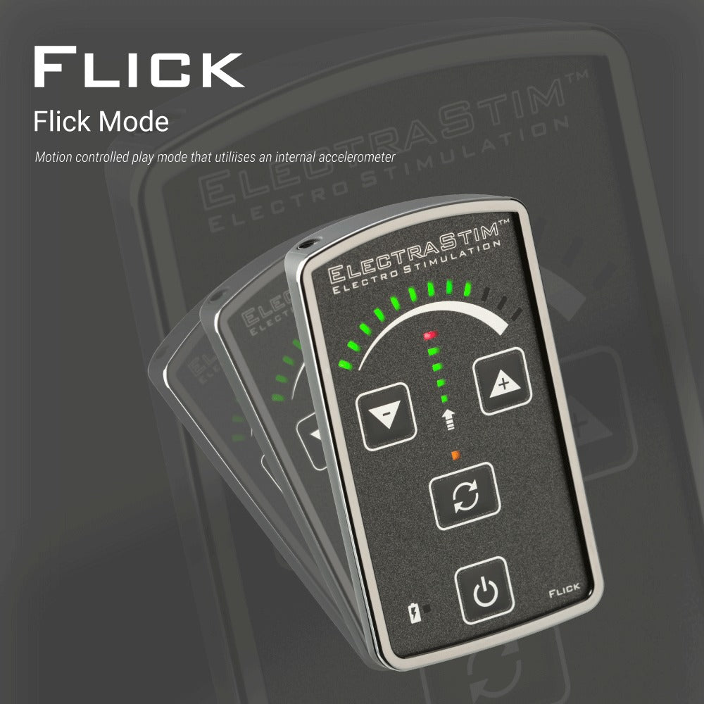 24 intensiteitslevels voor elke stemming7 patronen + uniekeâFlickâ-functie Lichtgewicht&discreetâ ideaal voor reizen USB-C oplaadbaar â tot 6 uur speeltijd Perfect voor solo, koppel-&voorvoelplezierHandbewegingen die écht wat doen Ontdek de ElectraStim Flick EM60-E â de meest populaire, gebruiksvriendelijke electrostimulator voor beginners én liefhebbers van modern genot. Deze compacte krachtpatser is licht, slank én oplaadbaar, met genoeg power om je favoriete elektro speeltjes heerlijk te laten tintelen. Met 24 intensiteitsniveaus en 7 voorgeprogrammeerde patronen (denk aan waves, pulses en escalaties) pas je elke sessie aan je stemming aan. Maar wat Flick écht speciaal maakt? De gepatenteerde âFlickâ-modus, die jouw polsbewegingen vertaalt naar stimulatie. Shake, strook of spank â en de stroom volgt jouw ritme. Genot op maat, waar je ook bent De Flick is ontworpen met discretie én veelzijdigheid in gedachten. Dankzij de USB-C oplaadbare batterij neem je hem makkelijk mee op reis of een spannend weekendje weg. Ãén uitgang geeft je de mogelijkheid om 2uni-polaire of 1 bi-polaire accessoire tegelijk aan te sluiten. Ideaal voor solo-genot, spannende voorspelmomenten of intiem koppelspel waarbij je zelfs elektrogevoelens kunt delen â gewoon door elkaar aan te raken. ð¤ Let op: voor gebruik zijn elektro accessoires én contactgel nodig (inbegrepen in het startpakket!). Productspecificaties Afmetingen: 95 x 55 x 15 mm Intensiteit: 24 niveaus Stimulatiepatronen: 7 + Flick-modus Aansluiting: 2 mm pin connector Opladen: USB-C, tot 6 uur speeltijd Aantal kanalen: 1 (voor 2 uni- of 1 bi-polair accessoire) Geschikt voor: solo, duo, masturbatie, penetratie, oral Gewicht: lichtgewicht&draagbaarInhoud verpakking 1x ElectraStim Flick EM60-E 1x 2mm aansluitkabel 1x USB-C oplaadkabel 4x uni-polair ElectraPads 1x Opbergpouch 1x Garantiekaart&handleiding (EN/FR/DE/NL/ES/IT)Handleiding ElectraStim Flick EM60 Wat is de Flick EM60? De ElectraStim Flick is dé ideale elektro-stimulator voor beginners. Compact, stijlvol en oplaadbaar via USB-C, dus perfect voor avontuurlijk gebruik â waar je ook bent. Met één kanaal bedien je 2 uni-polair of 1 bi-polair accessoire. En het hoogtepunt? De gepatenteerde Flick-modus â stimulatie die reageert op je bewegingen. Shake it, baby! ð ð Opladen Sluit de bijgeleverde USB-C kabel aan. Rood lampje = opladen bezig. Lampje uit = volgeladen (na ±3 uur). Speelduur tot 6 uur! ð Aansluiten&KlaarzettenSteek het 2 mm snoer in de bovenkant van de Flick. Verbind beide uiteinden met jouw elektro speeltje(s). Je kunt ook met zân tweeën spelen â elk een elektrode aangesloten op dezelfde Flick. â¡ Gebruik&IntensiteitZet aan via de powerknop â display licht op. Start met standje 0 en bouw langzaam op. 24 intensiteitsniveaus â van zacht kriebelen tot heerlijk intens. Te heftig? Gebruik het min-knopje of zet âm even uit. ðï¸ Patronen&Flick-modus7 patronen beschikbaar â van continue stimulatie tot pulserende waves. Druk op de modusknop om te wisselen. Flick-modus activeren? Houd de knop 2 seconden ingedrukt. Beweeg de Flick op en neer (zoals een maraca). Hoe sneller je beweegt, hoe intenser het gevoel. Perfect voor thrusts, spanks of strokes! ð Duo-genot: samen delen Verbind jullie allebei met een elektrode. Zorg dat jullie lichamen elkaar onder de taille raken. Zet de Flick aan en verhoog de intensiteit tot jullie allebei… euhm… meebeven