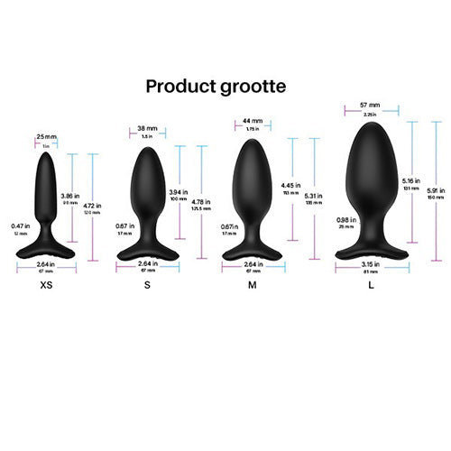 Lovense Hush 2– Discreet, Krachtig en Ultiem in Stimulatie De Lovense Hush 2 is een krachtige buttplug die subtiele opwinding biedt waar je maar wilt, perfect voor solo-gebruik of spannende partnerervaringen. Deze geavanceerde toy is stil en discreet, maar biedt krachtige vibraties die volledig aanpasbaar zijn. Waarom kiezen voor de Lovense Hush 2? Ultrastil maar krachtig – Perfect voor discreet gebruik zonder concessies te doen aan intensiteit. Bluetooth-bediening voor ultieme controle – Bedien zelf de vibraties of geef de controle aan je partner, waar deze ook is. Aanpasbare vibratiestanden – Ontdek verschillende intensiteiten en patronen via de Lovense-app, of creëer je eigen ritme. Comfortabel en ergonomisch – Ontworpen voor langdurig draagcomfort en maximale sensatie. Waterdicht voor veelzijdig plezier – Geniet zorgeloos, zelfs onder de douche of in bad. Ervaarde Kracht van de Lovense Hush 2 De Lovense Hush 2 is dé keuze voor iedereen die zoekt naar een buttplug die zowel discreet als intens is. Dankzij de app-bediening kun je zelf bepalen hoe sterk de stimulatie is of je partner de volledige controle geven, zelfs op afstand! Met verschillende vibratiestanden en een ergonomisch ontwerp is de Hush 2 comfortabel voor zowel beginners als gevorderden, en zorgt het voor langdurig plezier zonder ongemak. Waarom de Lovense Hush 2 bij Erovibes? Bij Erovibes staat kwaliteit voorop, en de Lovense Hush 2 is hier een perfect voorbeeld van. Het speeltje biedt jou of jullie een wereld van opwinding die volledig naar wens is aan te passen. Discreet, duurzaam en perfect voor een spannende ervaring – overal en altijd. Specificaties van de Lovense Hush 2 Materiaal: Premium lichaamsveilig siliconen Kleur: Klassiek zwart met subtiele glansBediening: Bluetooth-compatibel met Lovense-app (iOS&Android)Vibratiestanden: Meerdere standen en patronen, volledig aanpasbaar via de appAfmetingen: Verkrijgbaar in verschillende maten voor persoonlijk comfortBatterijduur: Tot 2 uur gebruik per oplaadbeurtOplaadtijd: Volledig opgeladen in 90 minutenWaterbestendigheid: IPX7-waterdicht, geschikt voor bad en doucheGeluid: Geluidsarm, minder dan 45 dBLaat je verleiden door de krachtige en veelzijdige Lovense Hush 2 en ontdek de vrijheid van volledig aanpasbare stimulatie – nu beschikbaar bij Erovibes! Afmetingen: zie afbeelding