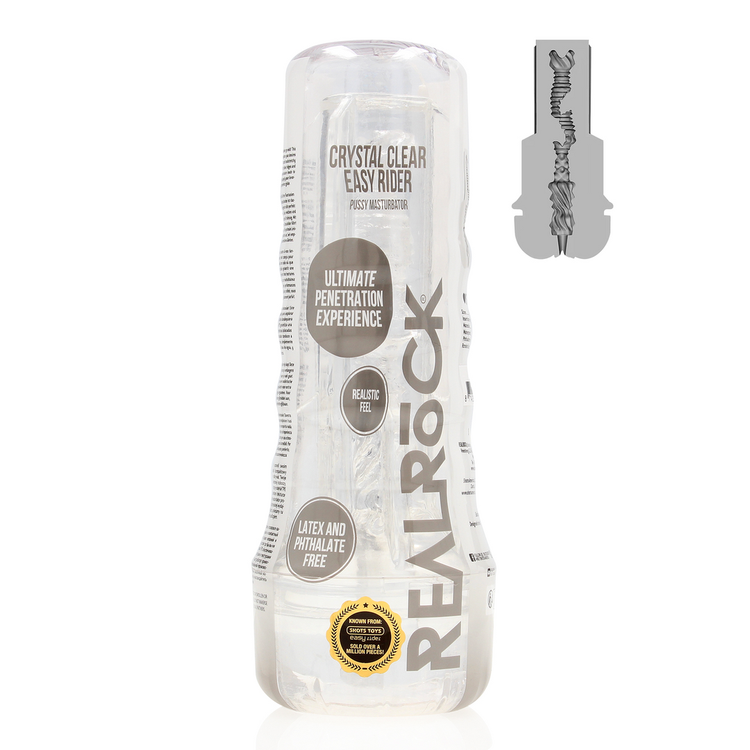 Discreet&slankâ Ready to go, past in je lade Ultrazacht TPE â Realistisch, rekbaar en huidvriendelijk Geribbelde tunnel â Extra grip en sensatie Douche-proof â Waterbestendig voor natte fun Easy clean â Snel schoon, direct weer klaar RealRock Easy Rider Pussy Masturbator Zoek je snelle,diepe ontspanning in een compact jasje? De Easy Rider pussy masturbator geeft je precies dat: een slank, discreet design dat soepel in je hand ligt en elke beweging omzet in volle, pulserende sensatie. Het ultrazachte TPE vormt zich naar jou voor een realistisch, omhullend gevoel vanaf het eerste glijmoment. Intense textuur, moeiteloze glijding Binnenin wacht een geribbelde, gelaagde tunnel die je ritme versterktâvan langzame teasing tot doelgerichte thrusts. Voeg een beetje glijmiddel op waterbasis toe en voel hoe de wrijving verandert in een zijdeachtige, verslavende flow. Speels waar jij wilt Waterbestendig en lichtgewicht: ideaal voor onder de douche of een discreet momentje tussendoor. Na afloop spoel je âm eenvoudig om en is hij zo weer klaar voor ronde twee. Compact, stil, onmisbaar Perfect voor thuis én onderweg. Een no-nonsense pussy masturbator die realistisch aanvoelt, goed reinigt en je telkens weer snel naar die heerlijke finish leidt. Specificaties&afmetingenTotale lengte: 21 cm Inbrengbare lengte: 18 cm Diameter (extern): 7,7 cm Gewicht: 390 g Materiaal: TPE (ftalaatvrij) Waterbestendig: ja Oplaadbaar: nee Onderhoud: reinigen met lauw water + toycleaner Gebruik: glijmiddel op waterbasis aanbevolen