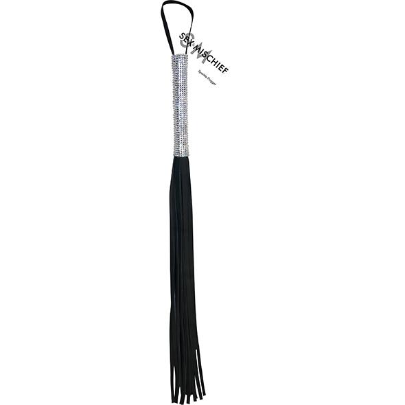 Voeg wat bling aan je seksleven toe met deze schitterende zweep van vegan leer. Door het sprankelende handvat is deze zweep het perfecte accessoire om je fantasie compleet te maken. Streel zachtjes of sla je partner met deze zweep.Product specificaties:- 79 cm totale lengte- 15 cm lange handgreep- 54 cm stroken- Ingredienten: 55% poly, 15% polyurethaan, 15% aluminum, 15% glas