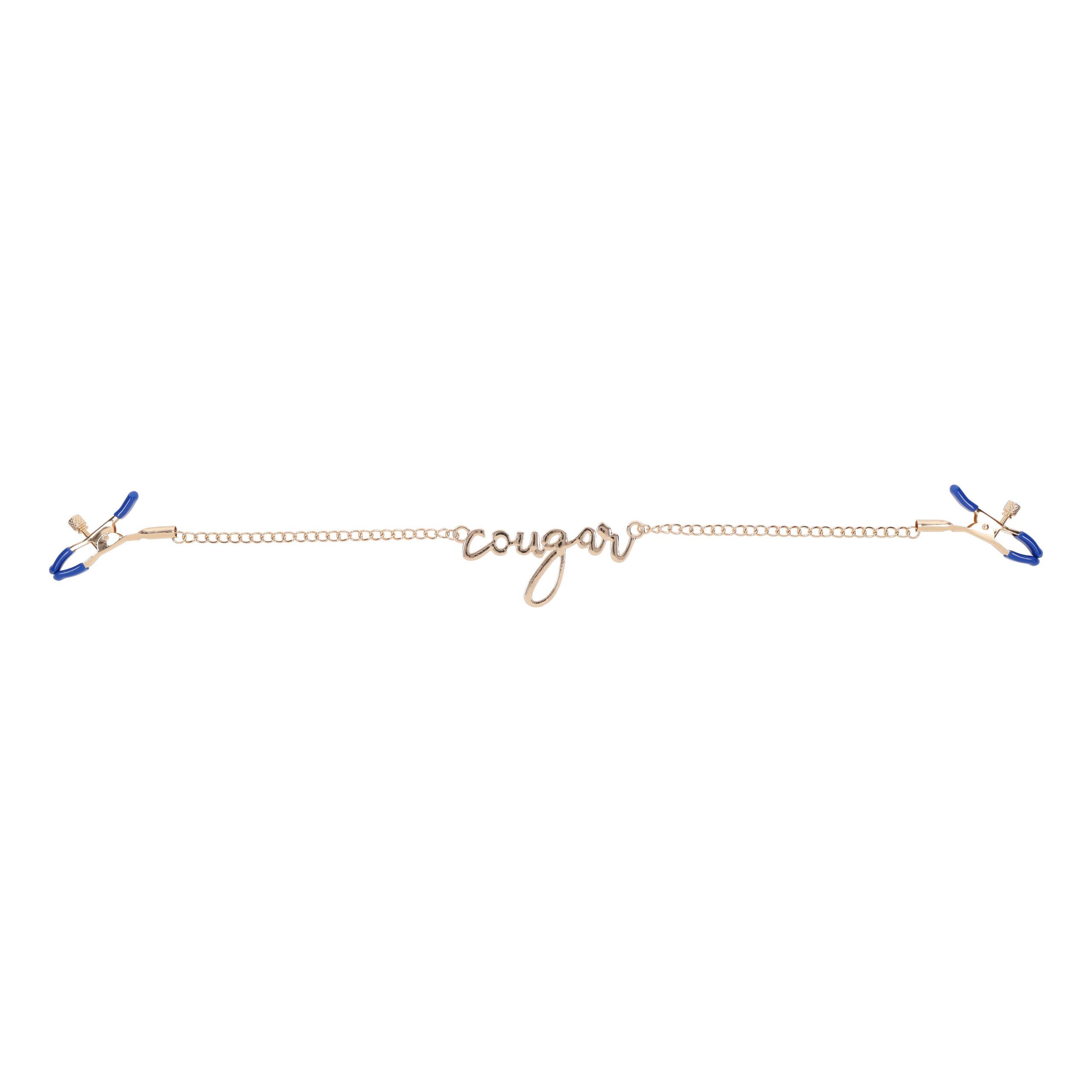 Verstelbare tepelklemmen met rubberen uiteindenLuxueuze gouden ketting met”Cougar”in sierlettersStijlvolle combinatie van goud en diepblauwPerfect voor het verkennen van nieuwe sensatiesElegante en speelse toevoeging aan je collectieStijlvolle Tepelklemmen met”Cougar”SierlettersBreng een vleugje luxe en opwinding in je intieme momenten met de Sportsheets Cougar Tepelklemmen. Deze elegante klemmen zijn ontworpen om zowel esthetisch aantrekkelijk als functioneel te zijn, waardoor je nieuwe dimensies van plezier kunt ontdekken. Verstelbaar voor gepersonaliseerd comfortDe tepelklemmen zijn voorzien van rubberen uiteinden en een verstelbaar spanningsmechanisme, zodat je de druk nauwkeurig kunt aanpassen aan je persoonlijke voorkeur. Dit maakt ze geschikt voor zowel beginners als ervaren gebruikers die op zoek zijn naar variërende intensiteiten. Luxueus ontwerp met speelse details De gouden ketting verbindt de twee klemmen en bevat het woord”Cougar”in sierlijke letters, wat een speels en verleidelijk element toevoegt. De combinatie van de gouden ketting en de diepblauwe accenten zorgt voor een opvallende en stijlvolle uitstraling.Duurzaam en stijlvol Gemaakt van hoogwaardige materialen, bieden deze tepelklemmen zowel duurzaamheid als een luxe uitstraling. De rubberen uiteinden zorgen voor comfort, terwijl de stevige constructie garant staat voor langdurig gebruik. Specificaties: Materiaal: Metaal met rubberen uiteinden Kleur: Goudkleurige ketting met diepblauwe accenten Lengte ketting: 41,9 cm Verstelbare druk: Ja Fabrikant: Sportsheets