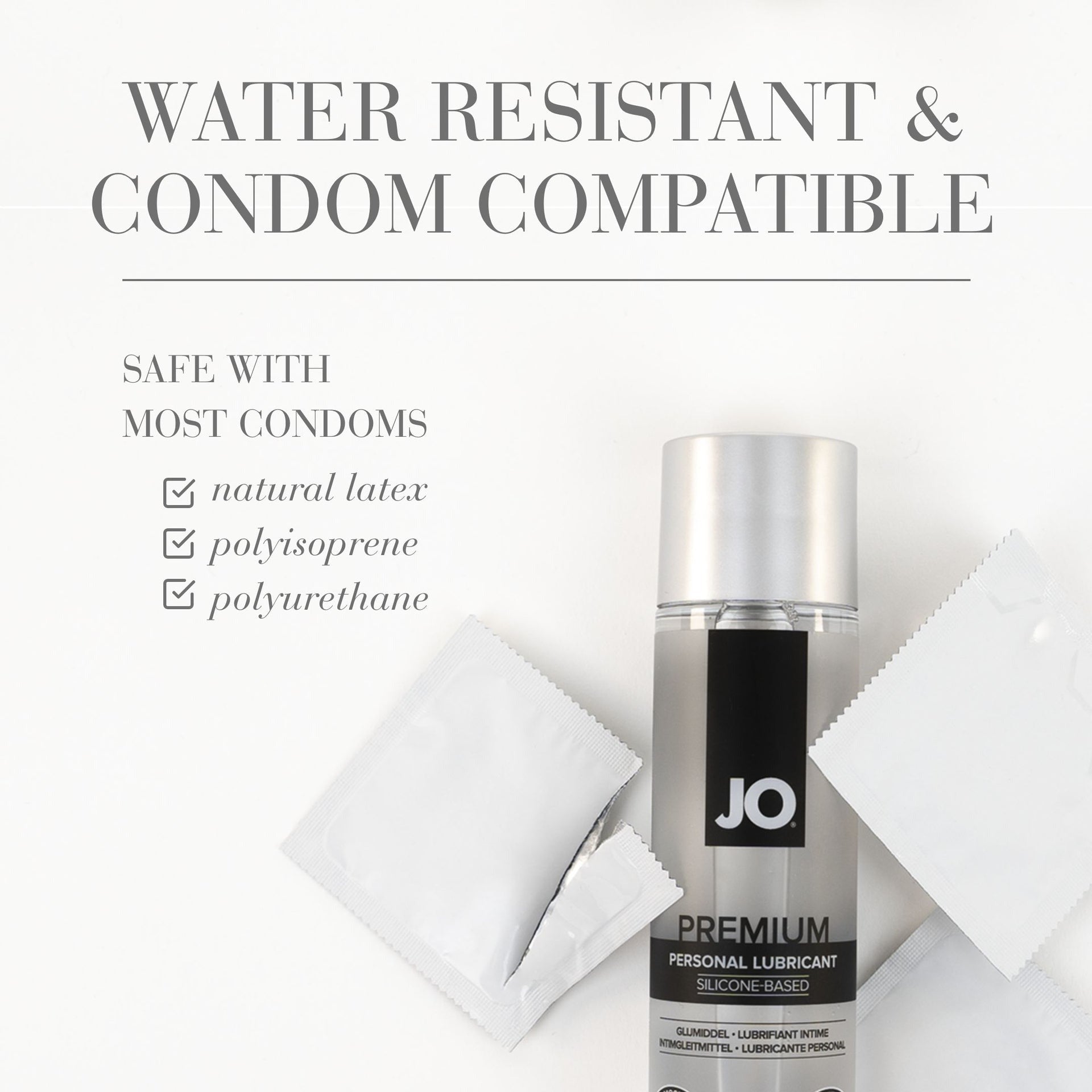 Glycerine, parabenen en glycolvrijConserveermiddelen vrijSiliconen van de hoogste kwaliteitWaterafstotendLangdurig glijdenCompatibel met de meeste niet-siliconen speelgoedCompatibel met de meeste condoomsGemaakt in de VSFDA-gelicentieerd / ISO-gecertificeerd100% pleziergarantieJO Premium is ons luxe, klassieke glijmiddel op siliconenbasis. De boterzachte textuur en het langdurige glijvermogen maken JO Premium perfect voor langere sessies waarin je elke beweging wilt voelen.De zorgvuldig uitgebalanceerde formule droogt zelfs op tot een weelderige, zachte afwerking waardoor uw huid zacht en gehydrateerd aanvoelt. Deze waterbestendige formule op siliconenbasis blijft waar je hem neerzet. Inhoud: 120 ml